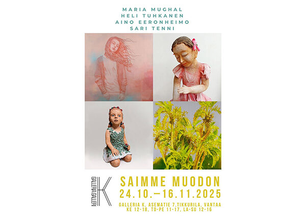 Saimme muodon – Aino Eeronheimo, Maria Mughal, Heli Tuhkanen, Sari TenniJulkaistu: 22.10.2025 SAIMME MUODON -näyttely kokoaa yhteen neljän taiteilijan maailmat. Todellisuus ja leikki, uni ja fantasia kietoutuvat toisiinsa, ja sisäiset mielikuvat saavat maalauksissa ja veistoksissa konkreettisen muodon. Värikkäiden ja valoisien pintojen alta voi paljastua odottamattomia käänteitä. Näyttelyn nimi Saimme muodon viittaa sekä…LUE LISÄÄ